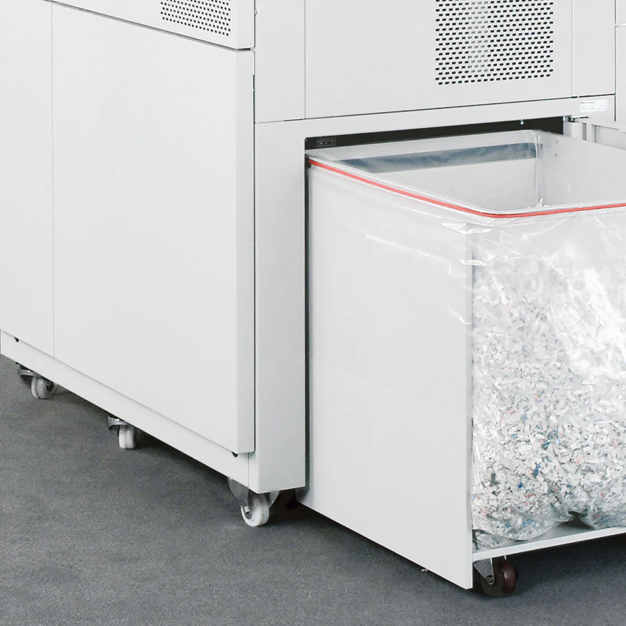 Der IDEAL 5009 Großmengen-Aktenvernichter setzt Maßstäbe bei der Vernichtung großer Mengen allgemeiner Dokumente. Mit Sicherheitsstufe P-3 und Partikelschnitt (6 x 50 mm) ist er ideal für zentrale Standorte mit hohem Papieraufkommen.