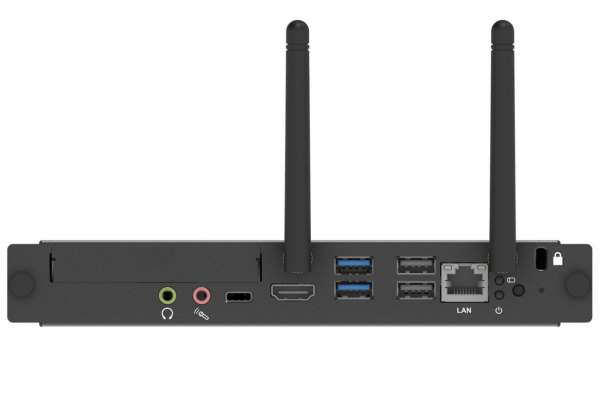 This mini OPS PC with Intel® Core™ i5 inside turns your iiyama interactive large format display into a stand-alone solution. It comes equipped with a powerful Intel® processor with integrated Ultra HD graphics and a fast SSD drive. No hassle with cables and having to mount a PC at the back of the monitor or on a floor lift. Simply slide in the iiyama OPS slot PC and get started right away.